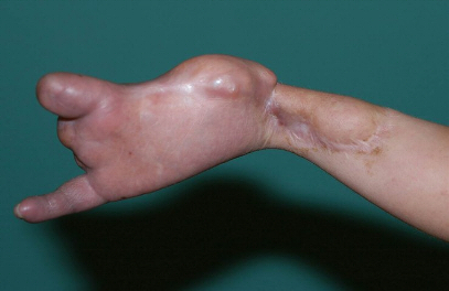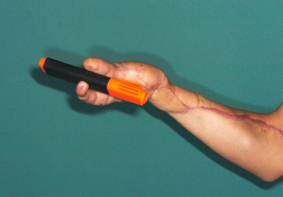 Therapie: Bildung einer Greifzange als Hilfshand aus körpereigenem Gewebe Verlängerung der Unterarmsehnen Freier mikrovaskulärer Lappen zur Deckung des Defektes am Handgelenk