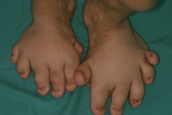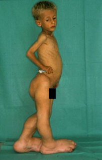 Therapie: Resektion der Wachstumsfugen aller Fußknochen, dadurch Erzielen eines Wachstumsstops ( in den ersten 6 postoperativen Monaten nur noch 2 mm Wachstum der Füße bei Schuhgröße 42)