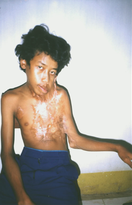 Unfallursache: schwere Verbrennung durch ein Reisstrohfeuer im Alter von 4 Jahren
