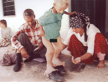 Diagnose: Proteus-Syndrom (angeborenes unkontrolliertes Wachstum von Extremitäten), wodurch der Patient schon mit 4 Jahren Schuhgröße 46 trug.